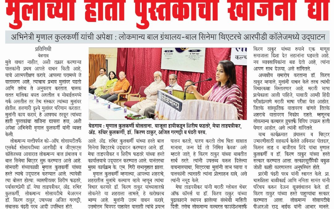 Reading is a habit that, when developed in childhood, benefits individuals throughout life. To instill a love for reading in children, parents must set an example and nurture a reading culture at home. With this vision, the Lokmanya Children’s Library and Children’s Cinema Theater were inaugurated at RPD College.